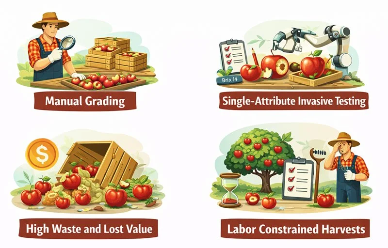 By evaluating multiple chemical and non-chemical attributes simultaneously and non-invasively, the Panache Intelligence software platform predicts with >75% accuracy the optimum end use of the apple and pricing strategies