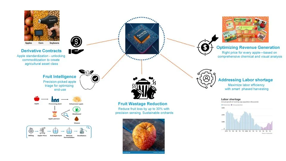 Panache’s AI platform enables apple growers, buyers, and processors to make fast, confident decisions, optimizing harvest timing, reducing waste, improving quality, and maximizing profitability across the value chain.
